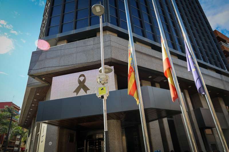 Con motivo del primer aniversario de la DANA, la alcaldesa decretó luto oficial durante toda la jornada de hoy, por lo que las banderas ondean a media asta en todos los edificios municipales.