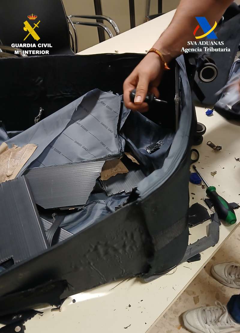 Guardia Civil de Valencia y Vigilancia Aduanera de la Agencia Tributaria, en tareas propias de resguardo fiscal y aduanero, bajo jurisdicción aduanera, han detenido a una mujer que trataba de introducir 6,3 kilogramos de cocaína en Valencia a través de un vuelo internacional. La droga se encontraba impregnada en la propia estructura de la maleta y sus superficies interiores.