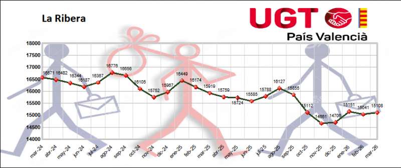 L'atur al mes de març creix lleugerament a la Ribera amb 15.000 persones desocupades