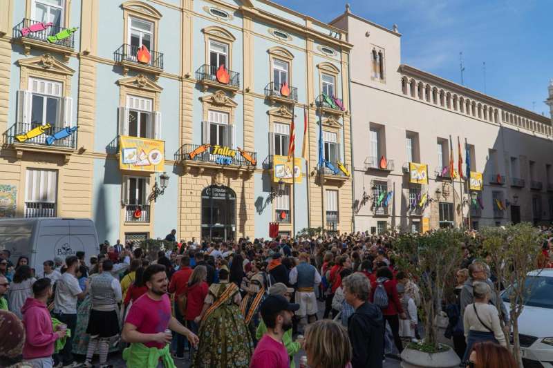 Mompó, Enguix y Mazzolari han compartido la matinal fallera de la Diputación con 45 juntas locales falleras y un centenar de municipios, asà como con decenas de comisiones del Cap i Casal que no han querido perderse la fiesta que ha tenido lugar en la Plaza Manises. A escasos metros, en el interior del Palacio dels Scala, han desfilado las distintas comisiones de la provincia desde las nueve de la mañana, en una recepción que ha abierto Torrent, con la presencia de la alcaldesa y diputada provincial Amparo Folgado, y ha terminado pasadas las 13.00 horas con la comisión Padre Alegre-Enrique Navarro de Valencia.