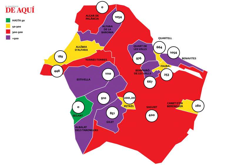 casos por cada 100.000 habitantes), con 16 contagiados en los últimos 14 días. En esta localidad de la Baronia, la incidencia también se ha multiplicado en pocos días. Estivella está en