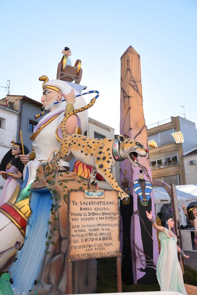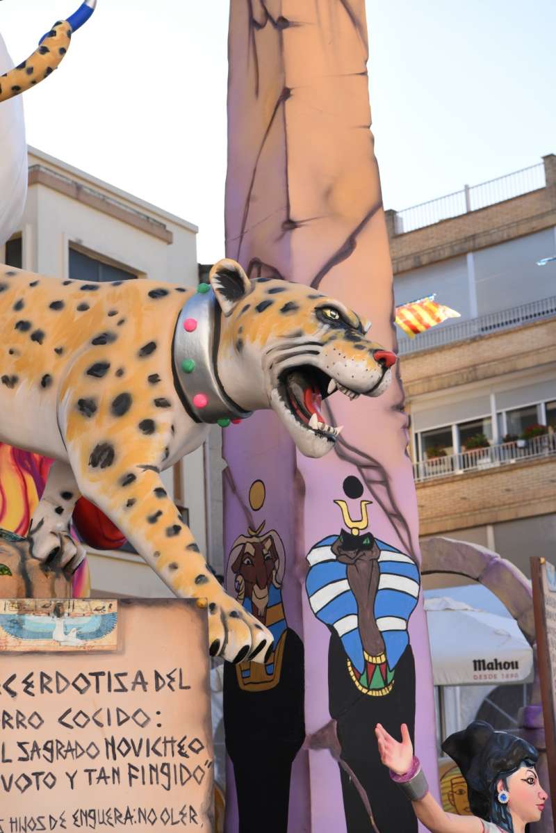 La Falla Grande, titulada La Corte de Tután En Palmón I, presenta una original puesta en escena ambientada en un particular universo egipcio trasladado a la realidad local de Enguera. A través de figuras como la reina Palomona-Nefertiri o el propio Tután en Palmón, el monumento despliega una crítica directa a problemáticas actuales del municipio.