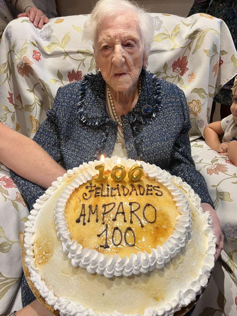 Amparo ha cumplido un siglo de vida rodeada de sus hijos, nietos y bisnietos. La nueva centenaria nació en Benifaió un 14 de noviembre de 1925 y durante muchos años estuvo trabajando en un conocido horno local junto con su hermano Felipe. Amparo ha celebrado tantos años de vida con su familia y ha podido apagar con fuerza las velas de este día.