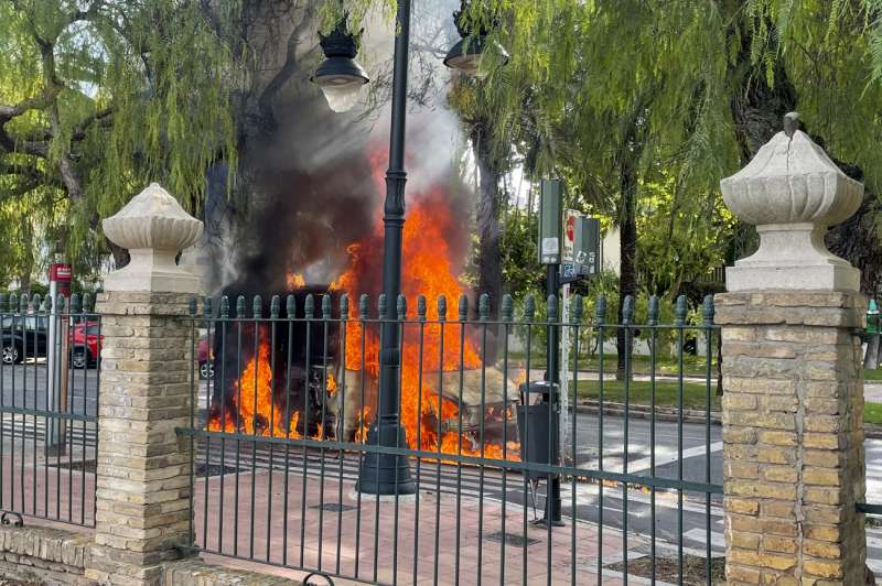 Una furgoneta ha ardido este lunes por la mañana frente a los Jardines de Viveros de València, EFE/ Juan Carlos Cárdenas