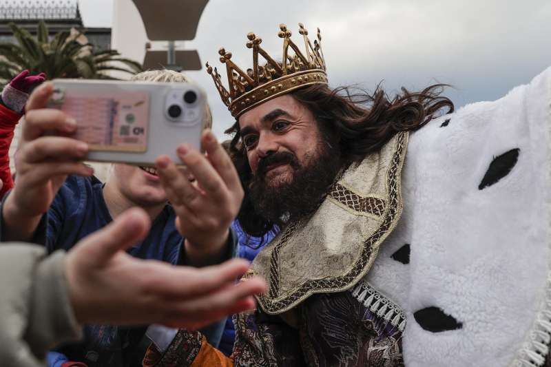 Un niño se toma una foto con el Rey Gaspar en Valencia, durante una cabalgata anterior. EFE/Manuel Bruque