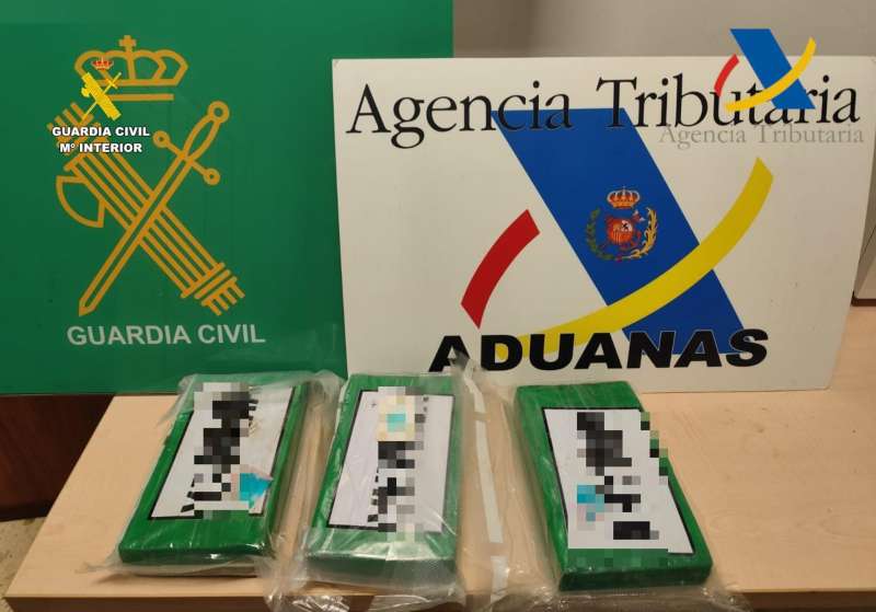 Ante estos indicios, los agentes procedieron a la apertura de la maleta, en la que, además de ropa y efectos personales, localizaron un doble fondo con varios paquetes plastificados en forma de ladrillo. En su interior se ocultaba un polvo blanco prensado que, tras las pruebas pertinentes, dio positivo en cocaína, con un peso total de 4 kilos.