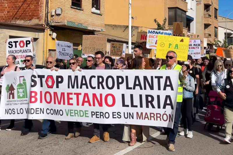 Manifestación contra la instalación de la macroplanta de biometano en Llíria este sábado. /ASOCIACIÓN CIUDADANA CAMP DE TÚRIA Y LA SERRANÍAVecinos y vecinas del Camp de Túria se han manifestado este sábado en la capital de la comarca,