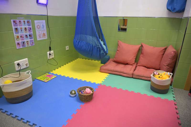 L'aula, que servirà d'espai de reforç per a tot l'alumnat del centre, compta amb cinc zones de treball adaptades a necessitats i ritmes diferents: la zona d'activitat, la zona de llum negra, la zona de relaxació, la zona motriu i la zona amb pissarra digital.