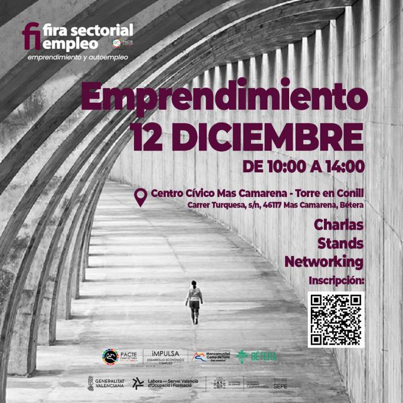La Mancomunitat Camp de Túria celebrarà, a través del Pacte Camp de Túria i en col·laboració amb l'Ajuntament de Bétera, una fira d'emprenedoria i autoocupació. Així el Centre Cívic de Mas Camarena a Bétera acollirà este esdeveniment divendres que ve 12 de desembre.