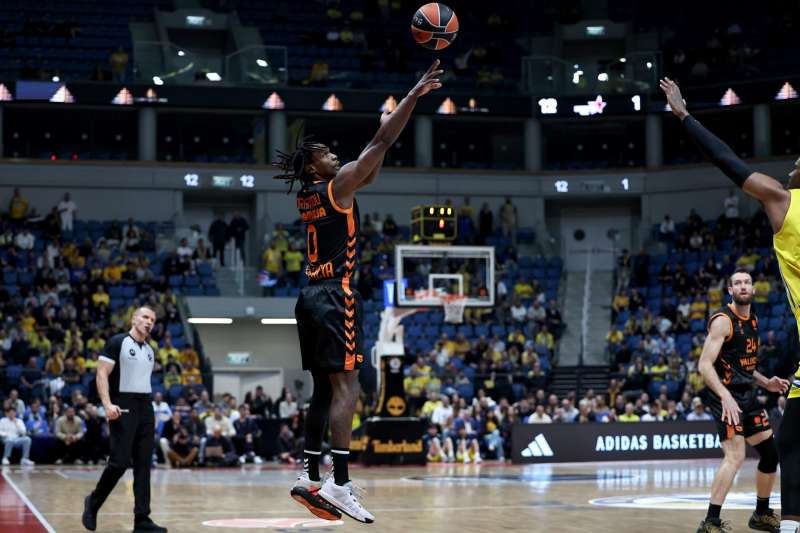 Brancou Badio, del Valencia Basket, en el partido de este jueves ante el Maccabi, en la Euroliga. EFE/Atef Safadi