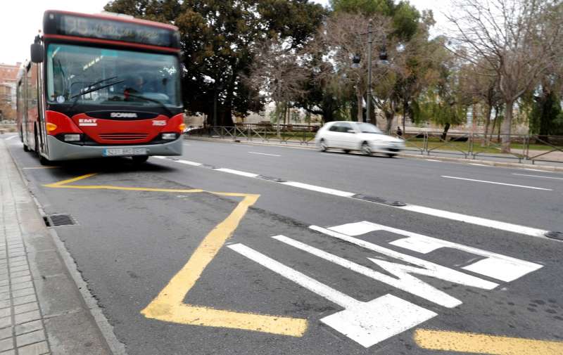 Un autobús de la Empresa Municipal de Transportes (EMT) de València llegando a una parada. EFE/Manuel Bruque