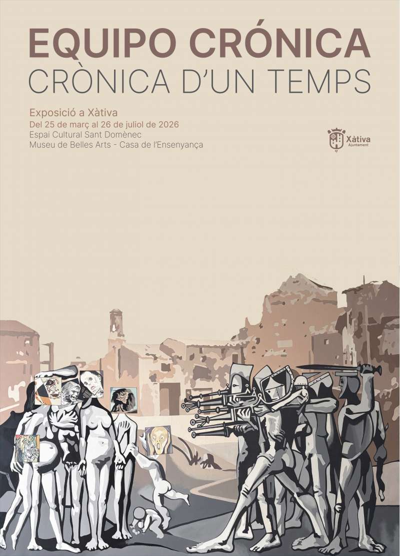 Cartell oficial ?Equipo Crónica. Crònica d?un temps?./ EPDAHui a les 19.30 hores s’inaugurarà l’exposició “Equipo Crónica. Crònica d’un temps” a l’Espai Cultural Sant Domènec. A l’acte oficial intervindran l’alcalde de Xàtiva, Roger Cerdà, el regidor de Cultura, Alfred Boluda i el comissari de la mostra, Pablo Camarassa. Una vegada finalitzen els parlaments, la visita continuarà al Museu de Belles Arts – Casa de l’Ensenyança.