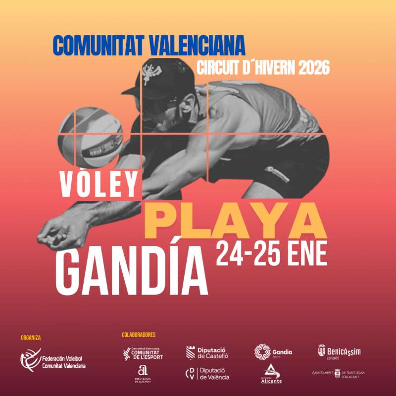 Unos 200 deportistas participarán, el próximo fin de semana en Gandia, en la primera prueba del Circuito de Invierno de Vóley Playa de la Comunitat Valenciana 2026. Gandia se vuelca un año más en este circuito que recorre las principales playas de la Comunitat en una competición que está a la cabeza del vóley playa nacional con la presencia de jugadores y jugadoras de más de quince nacionalidades diferentes.