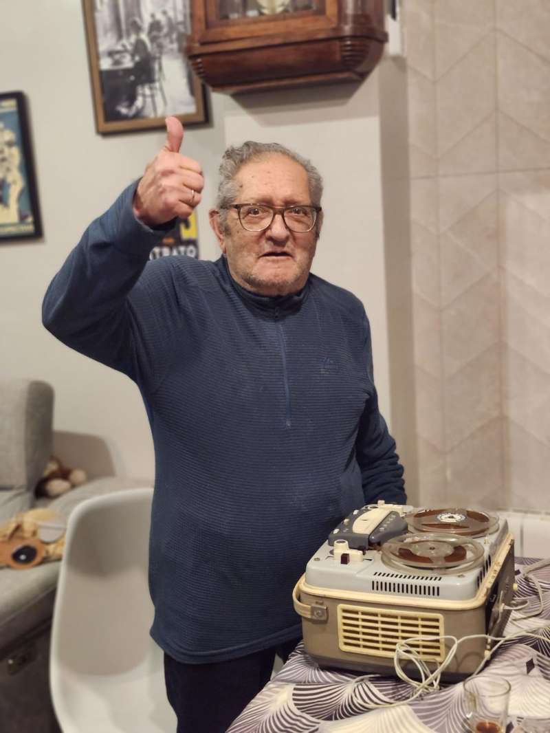Juan Romero con el magnetófono con el que grababa la clases de Medicina para hacer apuntes. EFE/Amparo Romero
