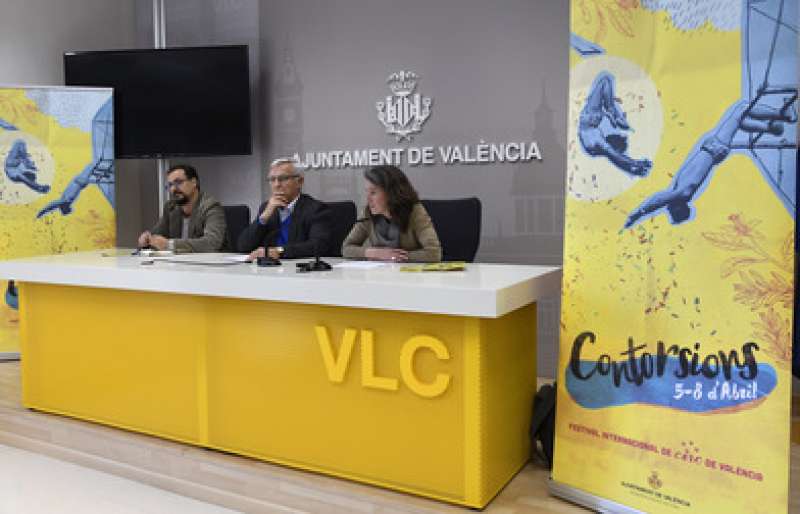 Presentació del festival al consistori. EPDADel 5 al 8 d’abril arriba a la ciutat el Festival Internacional de Circ ‘Contorsions’. L’Ajuntament de València, a través de la Regidoria d’Acció Cultural, ha organitzat esta iniciativa cultural que acosta l’art circense a menuts i majors durant la setmana de Pasqua. Este festival públic tindrà activitats a la plaça de l’Ajuntament i al Teatre El Musical (TEM), instal·larà una carpa al Jardí dels Vivers i, a més, arrancarà la programació de reobertura de l’espai La Mutant de Las Naves a partir del 6 d’abril.