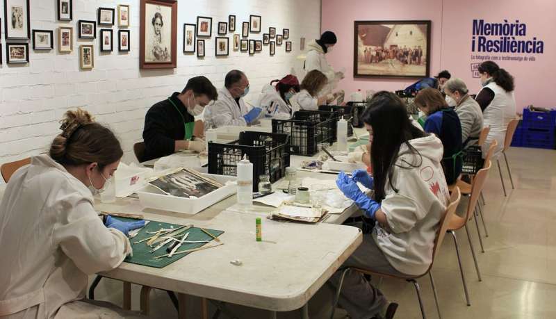 Part de l"equip de Salvem les Fotos treballant al Museu Comarcal de l"Horta Sud. EPDALes fotografies familiars, els àlbums domèstics i les gravacions casolanes no són només records íntims. Són un patrimoni col·lectiu de gran valor, que documenta la vida quotidiana, les relacions socials, les festes, els espais i les transformacions socials i que es va veure greument amenaçat arran de la dana.