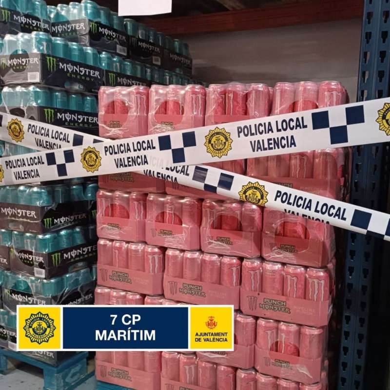 La Policía Local de Valencia ha decomisado en un local de venta de alimentación al por mayor del distrito marítimo casi 73.000 latas de refrescos y 3.000 chocolatinas que se vendían sin la correspondiente etiqueta e información alimentaria en español.