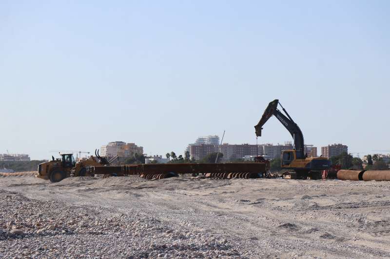 Una máquina trabaja en la reconstrucción de las playas de Almardà, Corinto y Malvarrosa días antes del trasvase de arena desde Cullera hasta Sagunt. / EPDALas playas de Almardà, Corinto y Malvarrosa comenzarán a recibir arena a partir del próximo 2 de marzo. Así lo ha confirmado la Demarcación de Costas en una reunión mantenida con el Ayuntamiento de Sagunt, en la que se han despejado las principales dudas sobre una actuación largamente esperada para frenar la degradación del litoral norte del municipio.