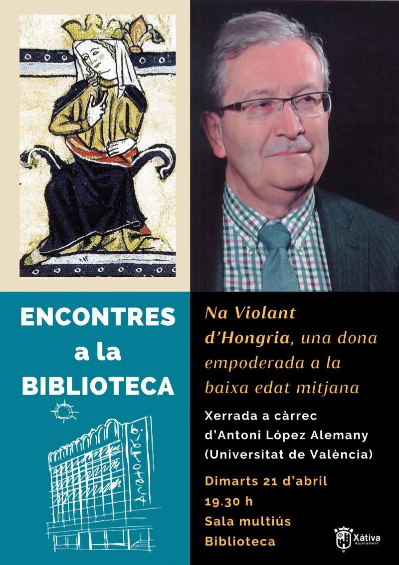 D’altra banda, la Biblioteca acull hui dimarts una xarrada centrada en Violant d’Hongria, dins del cicle “Encontres a la Biblioteca”, on s’analitza el seu paper en la Corona d’Aragó i la seua vinculació amb el territori valencià i amb Xàtiva.